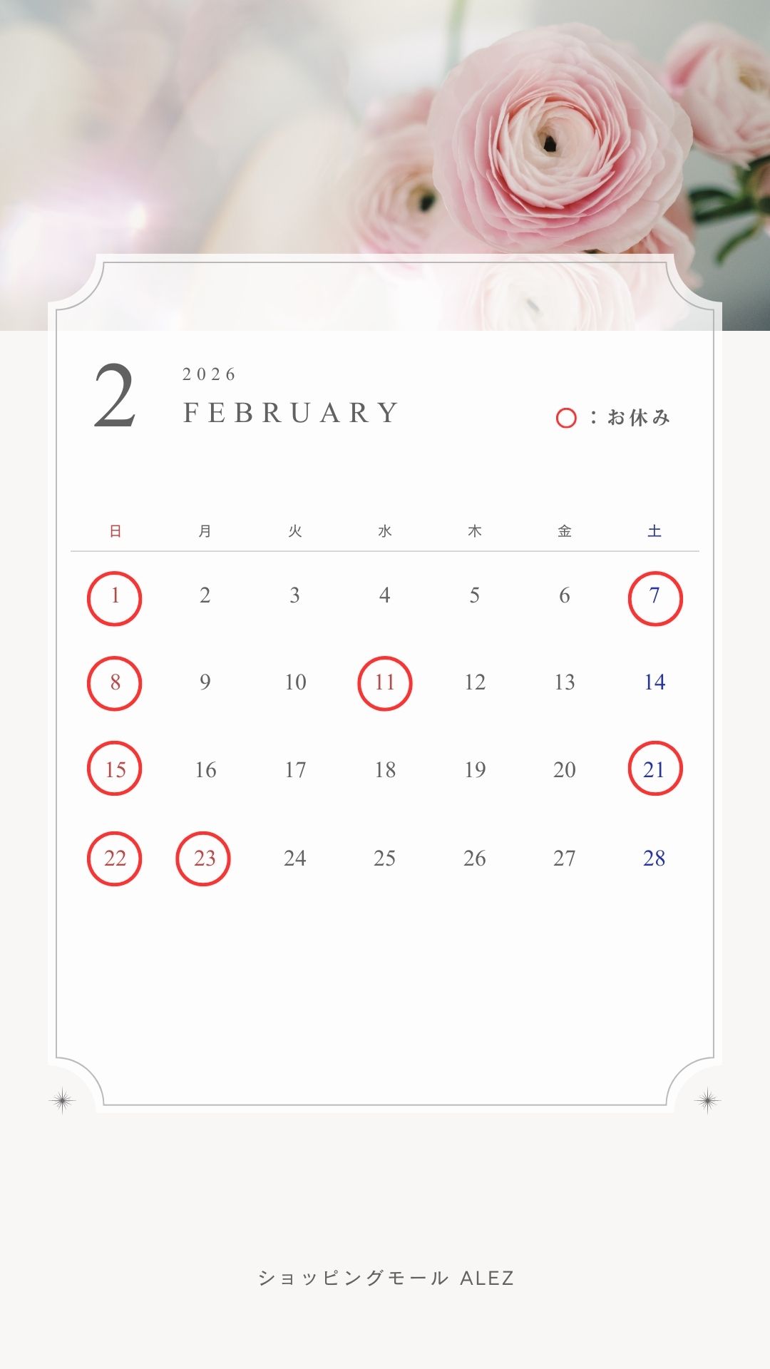 令和8年2月休診日のご案内