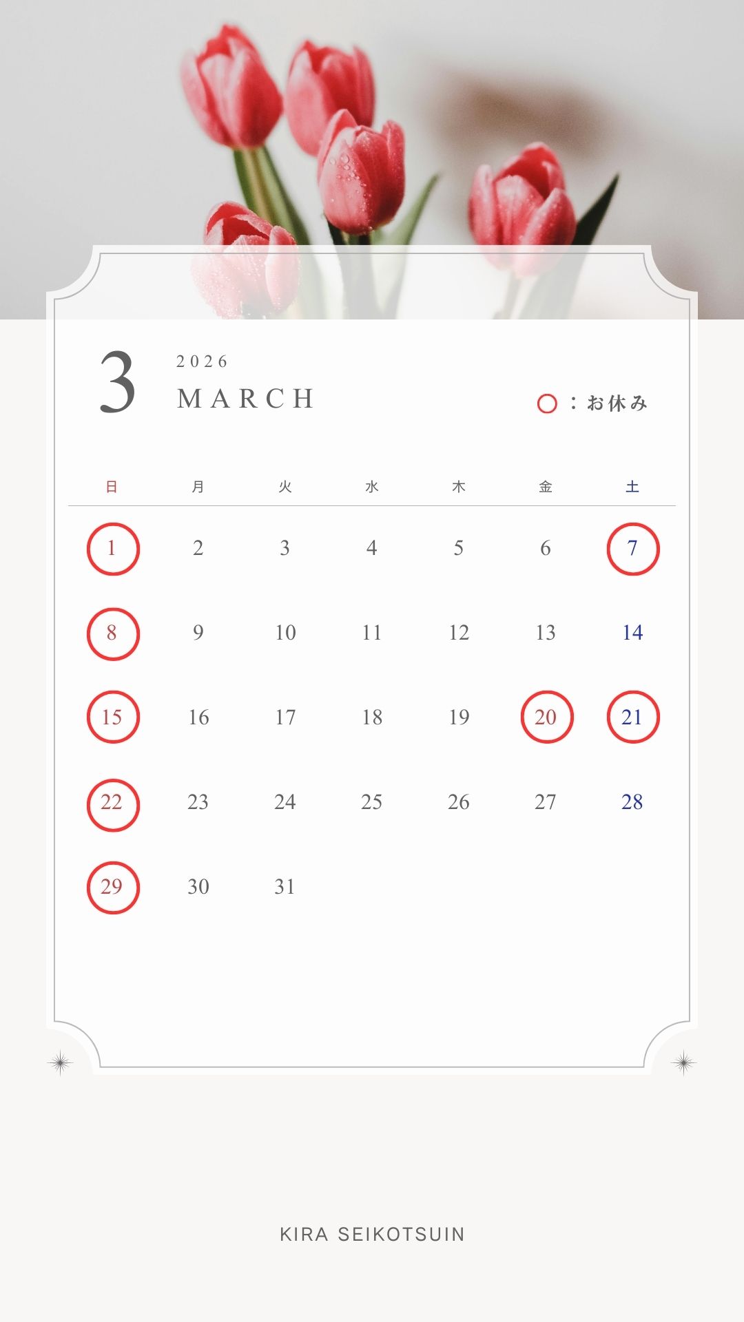 令和8年3月休診日のご案内